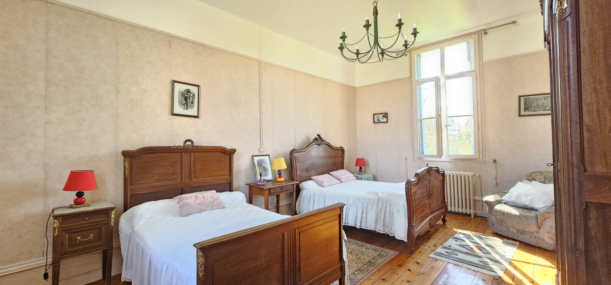 A l‘étage : un palier desservant 2 chambres, une salle d’eau, des toilettes
